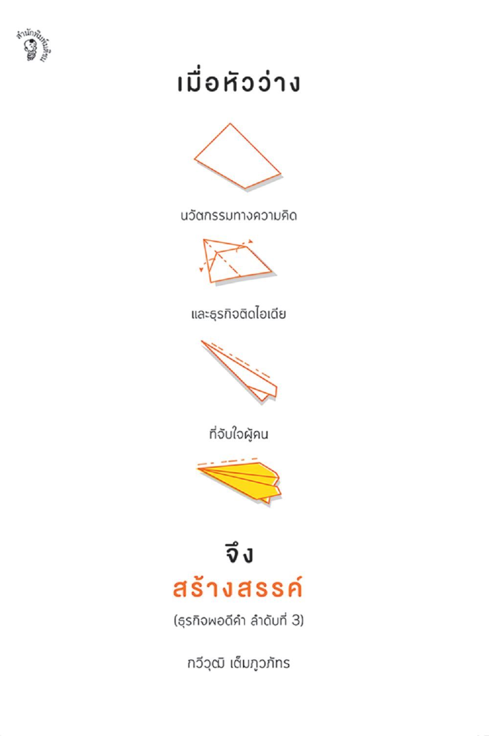 เนื้อหาย่อ : เติมแรงบันดาลใจ ใส่นวัตกรรมทางความคิด ด้วยเรื่องเล่าของเหล่าธุรกิจพลิกโลกจากนวัตกรหนุ่มอารมณ์ดี กวีวุฒิ เต็มภูวภัทร ที่ชวนผู้อ่านลัดเลาะไปพบเรื่องเล่าและไอเดียธุรกิจใหม่ๆ ตัวช่วยชั้นดีในการขบ การคิด แจมด้วยอารมณ์ขันชวนหัวเราะคิกคัก ที่ช่วยผ่อนคลายให้ “ใจว่าง” และ “หัวว่าง” ก่อนออกสตาร์ตสร้างสรรค์สิ่งใหม่